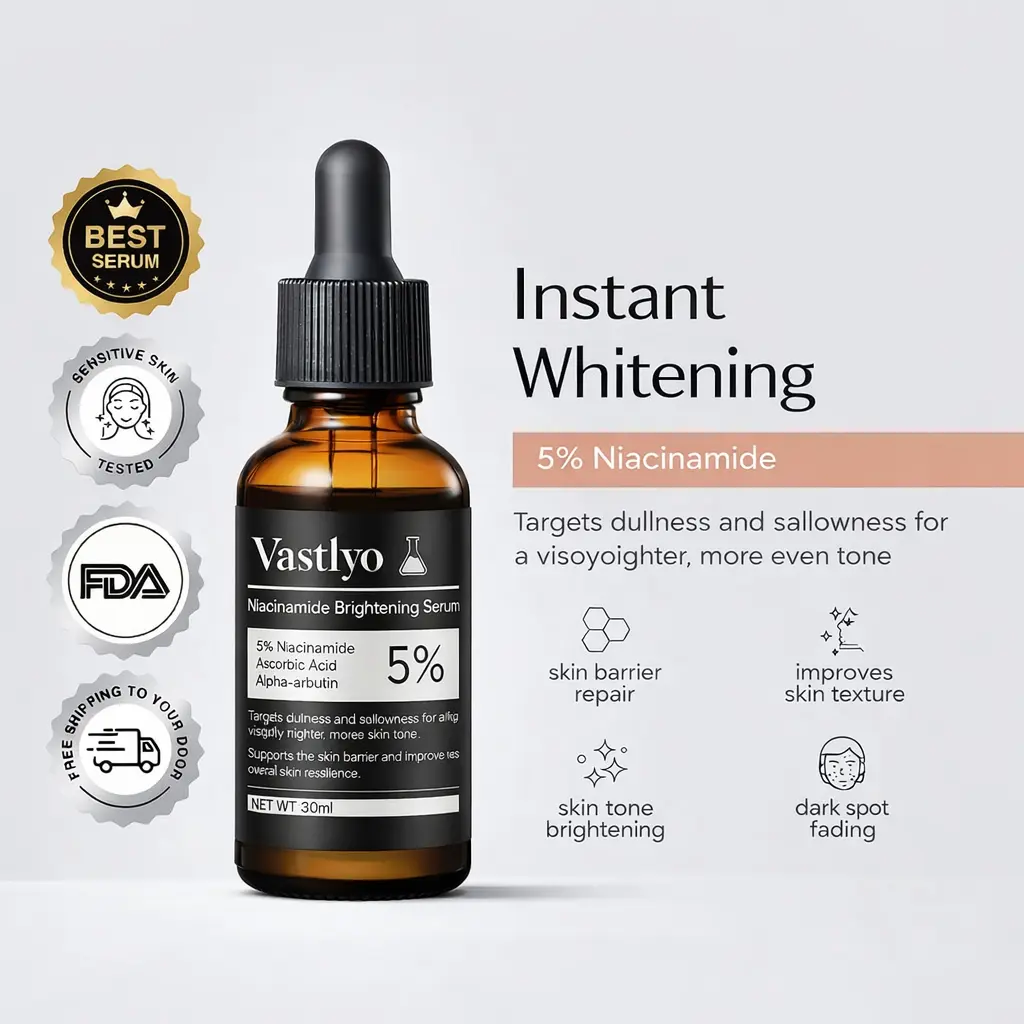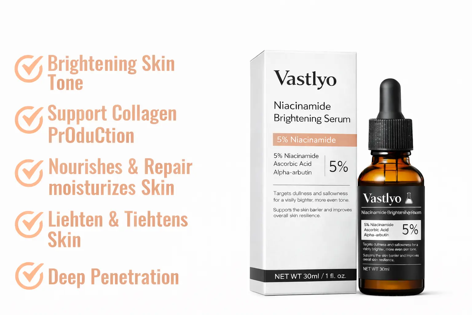 3. Vitamin C: Vitamin C is a powerful antioxidant that neutralizes free radicals and reduces damage to skin cells. It also inhibits the activity of tyrosinase, reducing melanin production and thereby brightening the skin. Additionally, Vitamin C promotes collagen synthesis, making the skin brighter and more even-toned.
