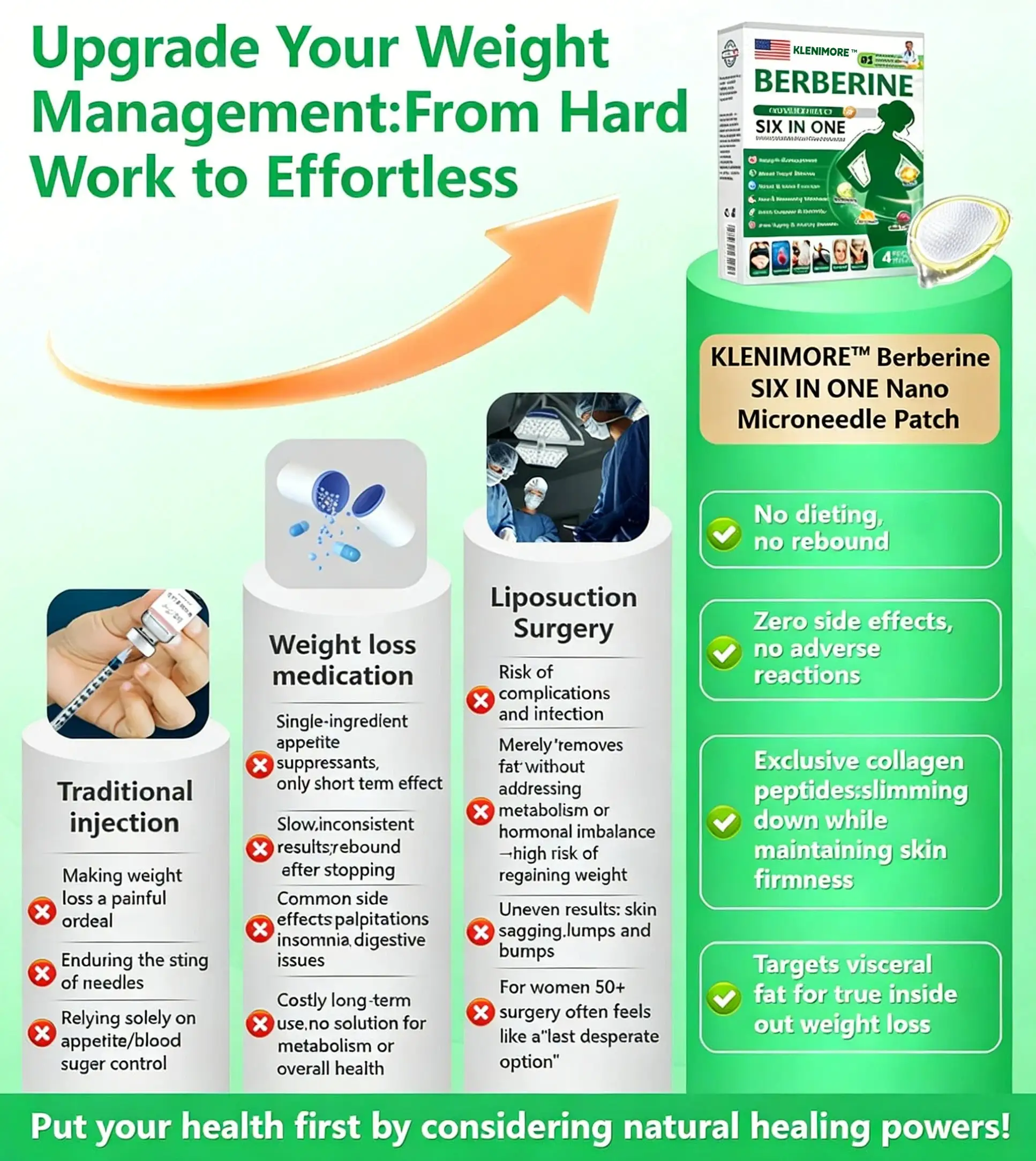 Multiple Benefits: This patch addresses various obesity-related complications, such as cardiovascular disease, type 2 diabetes, arthritis, high cholesterol / high blood pressure, fatty liver, liver function decline, brain fog, and memory loss.
