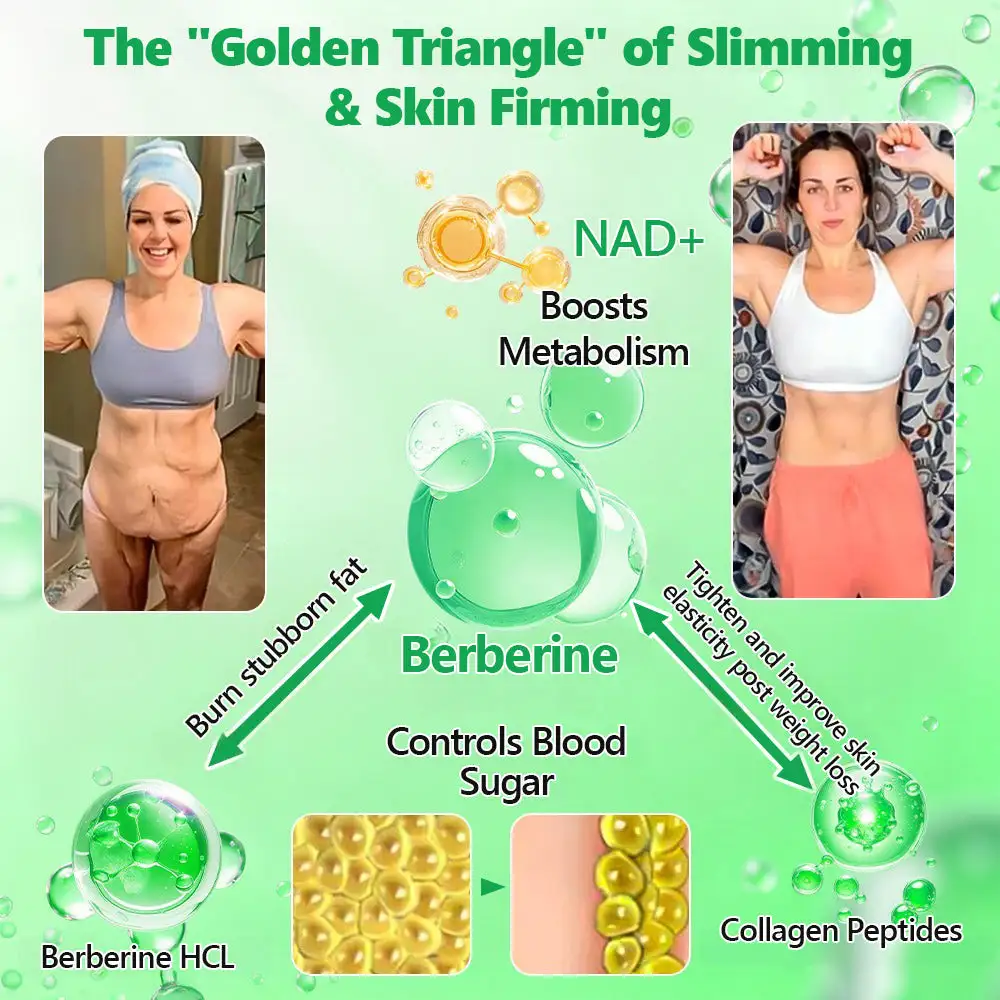 Collagen Peptides strengthen skin structure. NAD+/NMN stimulate cellular repair, while Omega-3 locks in moisture. This synergistic formula helps lift sagging skin, smooth wrinkles, and restore a youthful glow after weight loss.